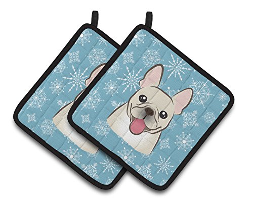 Caroline's Treasures Snowflake French Bulldog Pair of Pot Holders BB1672PTHD, 7.5HX7.5W, Multicolor