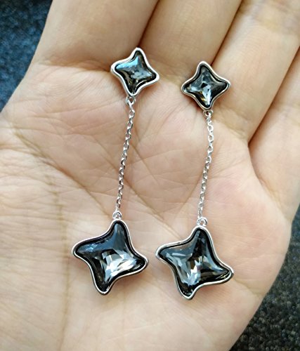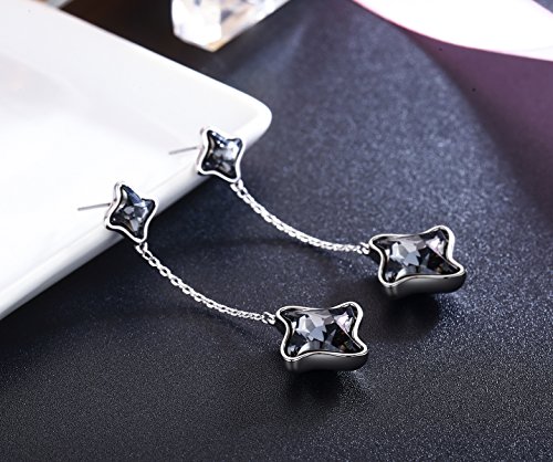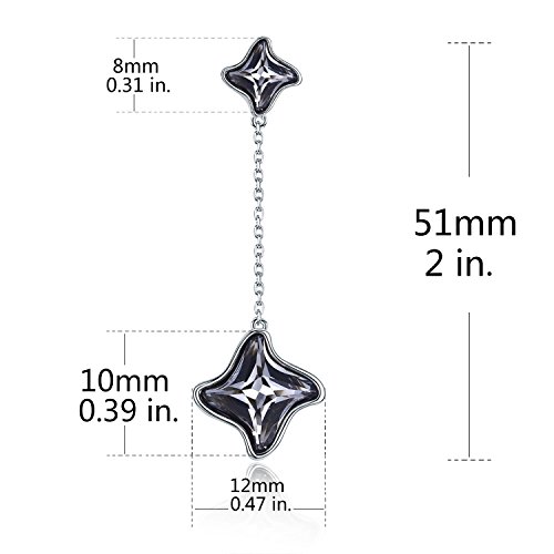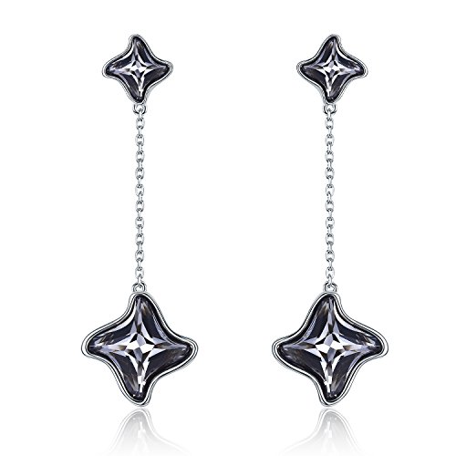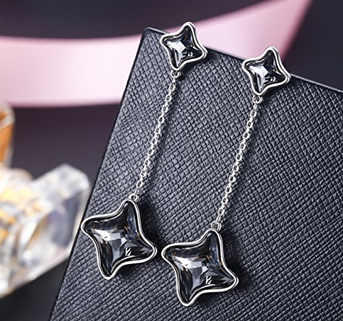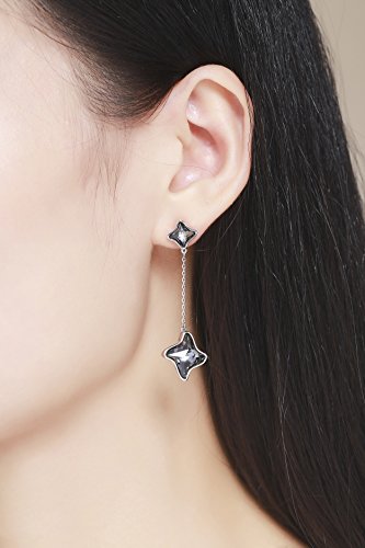 Platinum-Plated long earrings featuring 2 sexy and mysterious BLACK star shaped drops & 6.5 carats BLACK crystals from Swarovski reveal brilliant shine and a meticulous cut