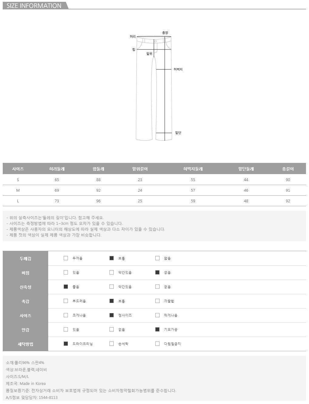 컬러는 브라운,블랙,네이비 3color로 구성되어 있으며, 모델의 착용 컬러는 네이비/S입니다.