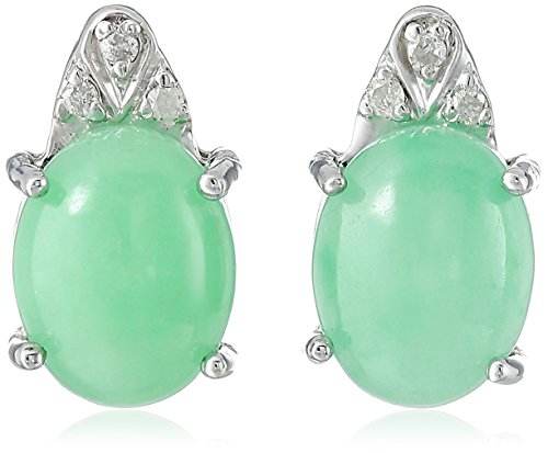 Oval-shaped Jade earrings in four-prong Rhodium-plated Sterling Silver setting featuring a trio of accenting Diamond rounds at top