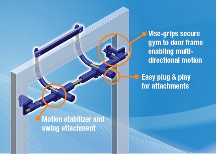 Gorilla Gym isn't just for the same boring, up-and-down motion you remember from school gym class. Gorilla Gym brings a whole new range of motion exercises into the comfort of your own home. Our innovative new design and patented Vise Grips add stability to allow you to move in ways that pull-up bars couldn't dream of.