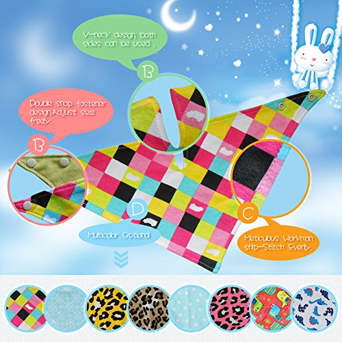 -. Feature : Made of super absorbent organic cotton / Cute lovely patterns and stylish V- collar design / Long enough and adjustable sanps style for most baby / Waterproof function keeps your baby from staining their clothes during eating or drinking.? / Bibs for boys & girls