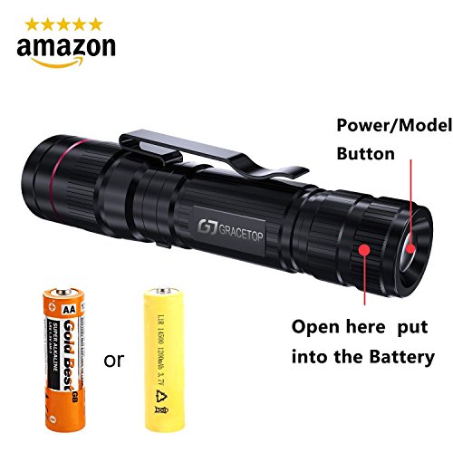In box: 1 x GT-17 Mini Flashlight, 1 x 14500 Battery, 1 x Battery charger, 1 x User Manual. Warranty: Gracetop provides customers with 30 days money back guarantee and 1 years warranty service