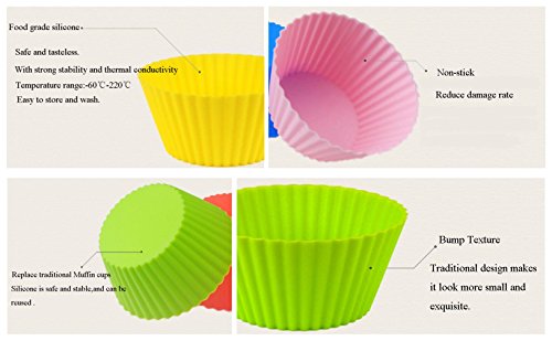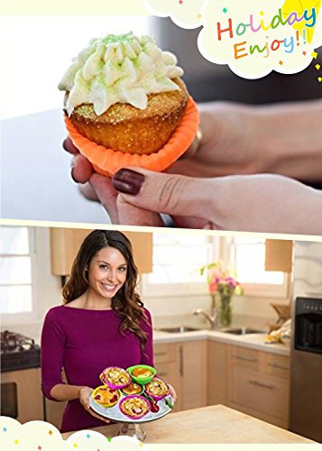 100% ECO-FRIENDLY AND DISHWASHER SAFE : Food grade silicone,Use EASY TO WASH, EASY TO RELEASE, NONSTICK silicon muffin cups instead of messy paper liners. Oven, microwave safe with up to 450 F. Freezer safe up to -40 F. Save your money and save environment with our silicone cupcake holders!