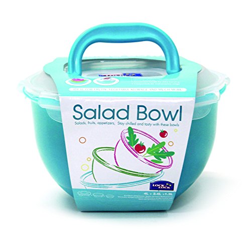LOCK & LOCK 6 Piece Nesting Color Salad Bowl Set with Handle, Blue/Green/Red