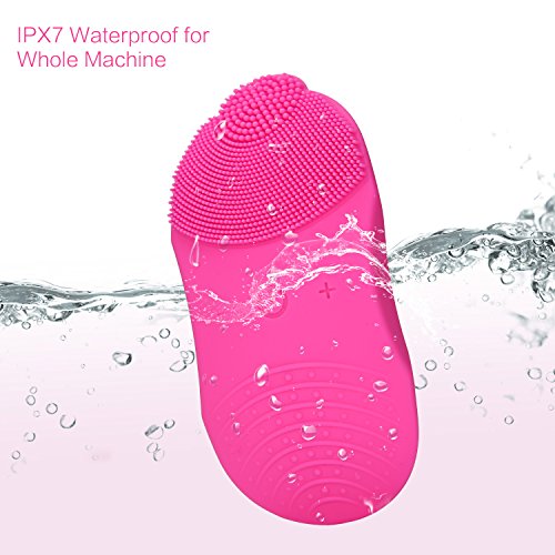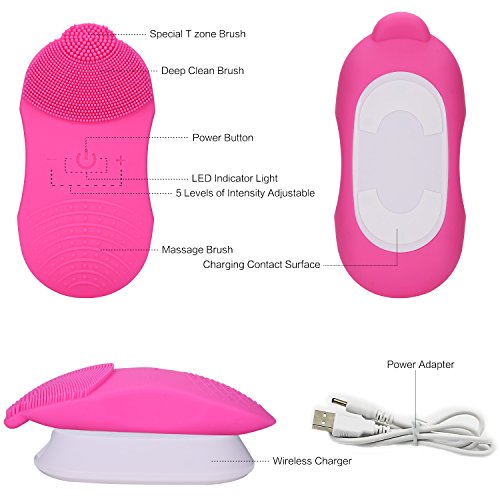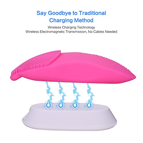 -. Feature : Skin-friendly, Safe Antibacterial: Made of food & medical grade silicone (FDA grade), soft to use on any skin. No stimulation. Nice to sensitive skin. / Remove 99% of Dirt & Anti-ageing Massage, 5 Levels: Sonic wave goes deeper into pores to remove 99% dirt. Boost blood circulation and reduce wrinkles. 5 levels of speed adjustable based on your needs. Sensitive skin can choose lower one. Make you glowing and younger. / Small Head Design Specially for T zone & Dead Ends: The small skin brush head designed for cleaning of oily and difficult place like wings of nose, area behind ears. The larger brush area for deep cleaning of whole face. Ergonomic design, fit face perfectly without dead ends. Rejuvenate your skin. / Efficient Cleaning & Convenient Wireless Charging Station: Powerful motor of 7800 RPM rotation speed, make cleaning process quickly and efficiently. Newest wireless charging technology, get rid of annoying cords and make your life easier. 5 hours charging, 90 days stand by. / Waterproof & Compact Portable Size: IPX7 waterproof. Safe to wash face. But don't soak it in water for a long time or use in bath or shower. Handheld size to be taken anywhere. Perfect for daily use.