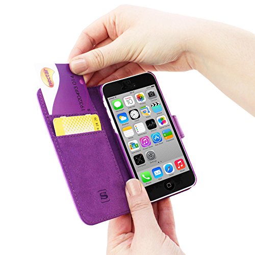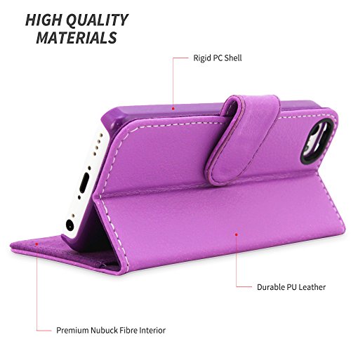 iPhone 5c Case, Snugg® - Leather Wallet Case with Lifetime Guarantee (Purple) for Apple iPhone 5c