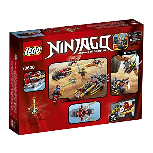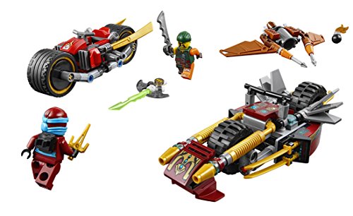 -. Binding : Toy -. Brand : -. EAN : 0673419247665 -. Feature : Kai's bike features big wheels with rubber tires, fold-out 'cutting' golden Ninja blades and 2 hidden cannons/boosters, Nya's bike features an adjustable elemental water cannon to target the sky pirate, adjustable rear flaps and golden Ninja blade details / Weapons include a translucent smoke-colored Djinn Blade with 'trapped Cole' element brick and Sqiffy's pirate sword / Includes 3 minifigures with assorted weapons: Kai, Nya and Sqiffy / Kai's bike measures over 1" (5cm) high, 5" (14cm) long and 2" (6cm) wide, Nya's bike measures over 1" (5cm) high, 5" (15cm) long and 2" (7cm) wide / Pirate flyer measures over 1" (3cm) high, 3" (8cm) long and 5" (13cm) wide -. IsAdultProduct : 0 -. ItemPartNumber : 6135757 -. Label : -. LegalDisclaimer : new -. Manufacturer : -. Model : 6135757 -. MPN : 6135757 -. PackageQuantity : 1 -. PartNumber : 6135757 -. ProductGroup : Toy -. ProductTypeName : TOYS_AND_GAMES -. Publisher : -. Studio : -. Title : Ninjago Ninja Bike Chase 70600 -. UPC : 673419247665 -. Warranty : No Warranty