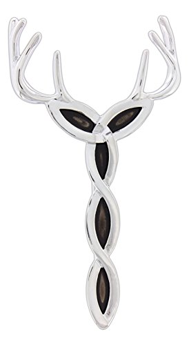 The simplistic detail of this royal Celtic stag trinity knot kilt pin is striking. The horns come into a perfect Trinity while the knot-work has a wonderful antique finish. Top all of this with rhodium to keep a very royal finish. While created to be worn on a kilt, it also makes a great pin or brooch. Wear it on a coat, hat, kilt, or bag. You will love it and will surely be noticed!Feature