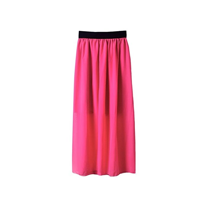 (애틱 걸)Achicgirl 레이디스 하쉬크 순색컬러풀 훌륭하 캔디 컬러 고무 웨스트 시폰 플리츠 스윙 롱 스커트(20 색전개)