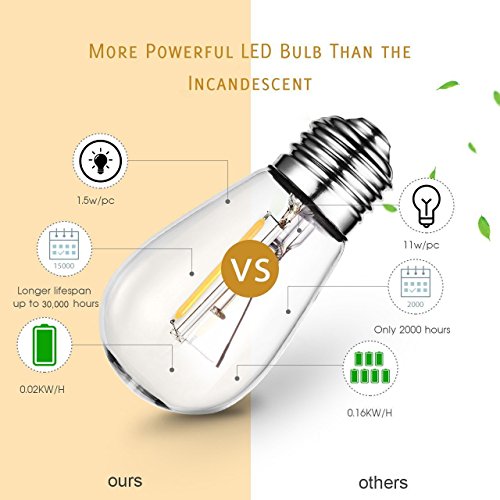 - ECO-FRIENDLY AMBIENCE : Cut your string light energy usage by more than 70% incandescent string lights (15 sockets) use 165-watts to operate while the same LED retrofit string light uses just 22.5-watts. LED technology lets you reduce your energy consumption without skimping on the magical atmosphere that illumines after-dark outdoor entertaining.