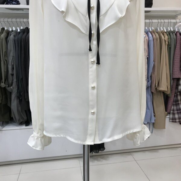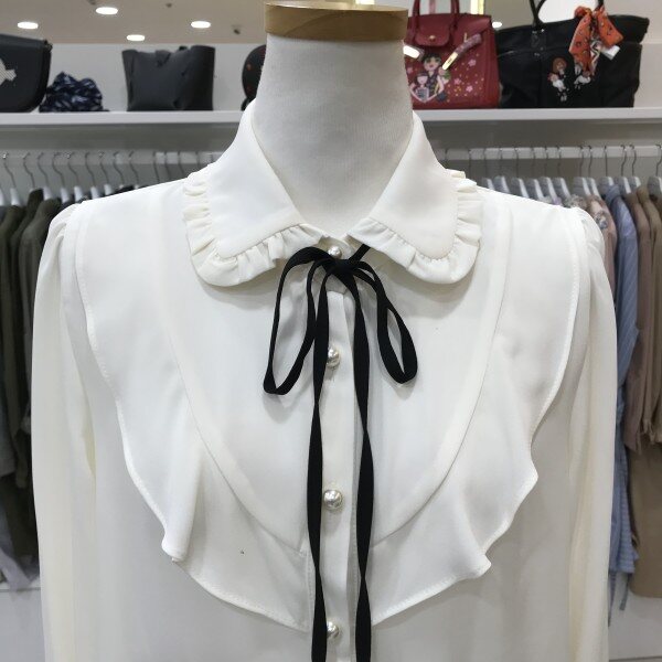 러플 배색 끈 장식 블라우스입니다여성스러우면서 고급스러운 러플 포인트 블라우스입니다끈 장식은 탈부착 가능하며 어디에나 어울리는 기본 디자인의 블라우스라 활용도가 높답니다스커트, 슬렉스 어디에나 코디가 쉽답니다사이즈 55 기준가슴둘레 82cm신장 160cm총장 58cm