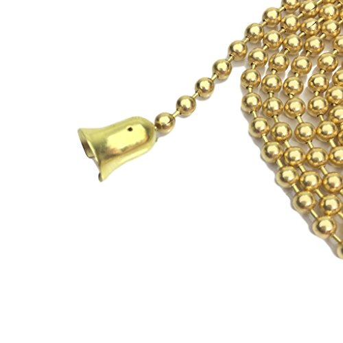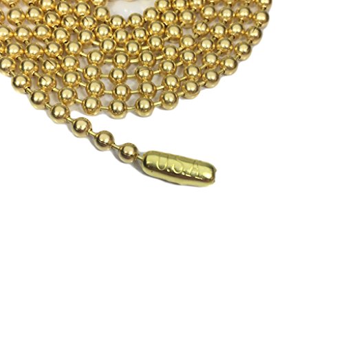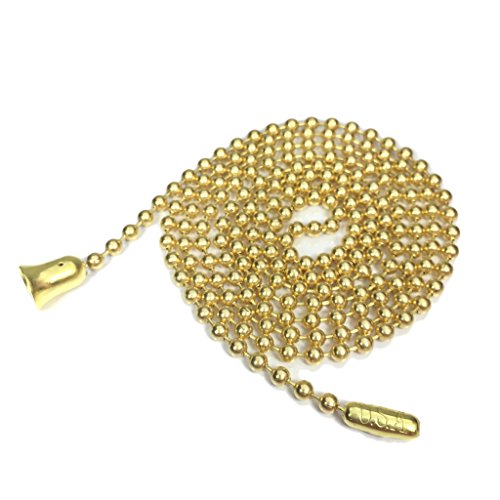 Gold color plated brass ball chain replacement fan pull for ceiling fans and lights. One package includes two 36-inch chains each with a kidney type connector and bell shaped pendant type pull. Has an average tensile strength of 20lbs making is a durable and more dependable replacement. This ball chain can easily be used for multiple purposes by removing the bell shaped pull. Use it to hold military dog tags, pendants, or wear on its own. This can also be used as a retention chain or for other arts and craft of jewelry projects.Feature