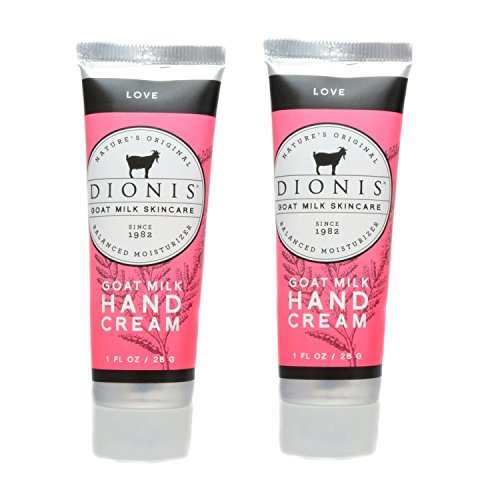 - Two item set that includes two 1-oz tubes of Dionis Goat Milk Hand Creams in Love scent.