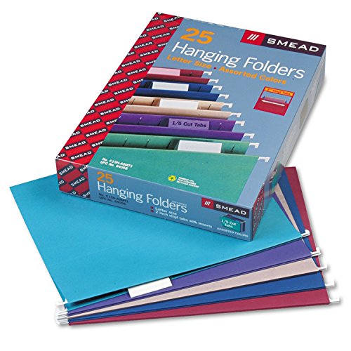 -. Title : 3 X Smead Hanging File Folder with Tab, 1/5-Cut Adjustable Tab, Letter Size, Assorted Jewel Tone Colors, 25 per Box (64056)