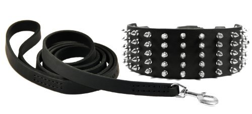 Product Description Wide Spike is a 2-3/4-Inch wide beautiful leather collar with 5 rows of spikes. No Assumptions is our basic leash. Add floating ring for convenience. 0