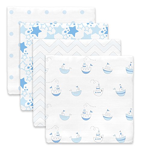 Set of 4 premium cotton muslin blankets; pre-washed and gets softer with every wash.