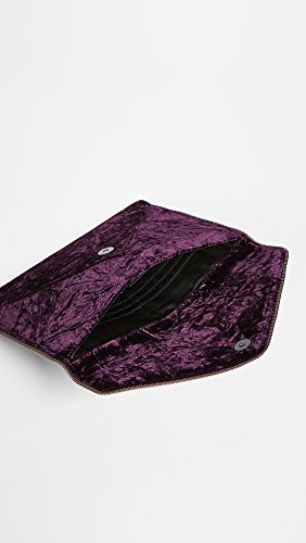 Exposed zipper trim brings industrial edge to this plush velvet Rebecca Minkoff clutch. The magnetic front flap lifts to reveal a lined interior with 6 card slots.