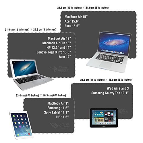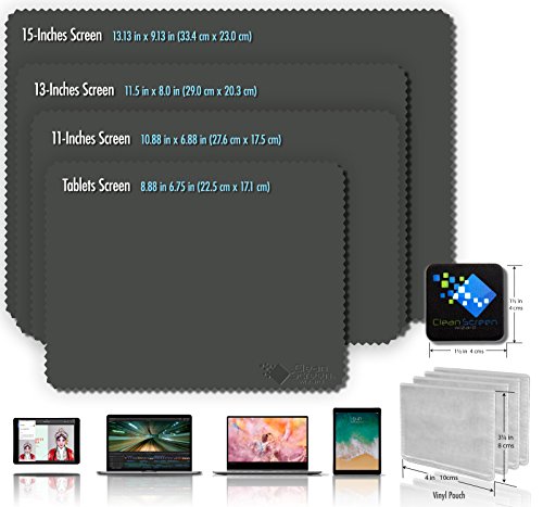 5 PACK BUNDLE - 4 Multi Size Large & XL (extra - large) cloths + 1 Sticker laptops screen cleaner. Tested on Laptops 15", 13" 11" 12" and iPad Pro 10"- Great Gift for Apple computers : MacBook Pro 15 in | MacBook Pro 13 in | MacBook Air 13 | MacBook Air 11, MacBook Pro 13.3, MacBook Pro 15.4 with Touch Bar/Touch ID, iPad Pro 10 in -100% Satisfaction Guarantee, or money back