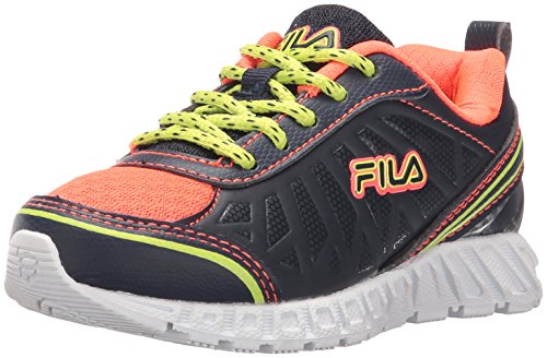Fila Girls' Blastrunner 2 Skate Shoe, Fiery Coral/Fila Navy/Safety Yellow, 1.5 M US Little Kid