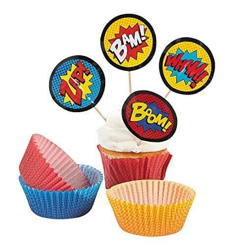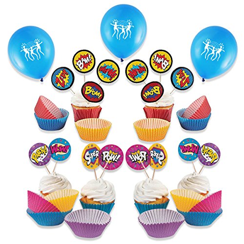 200 Piece Girl and Boy Super Hero Comic Cupcake Liner and Pick Party Pack