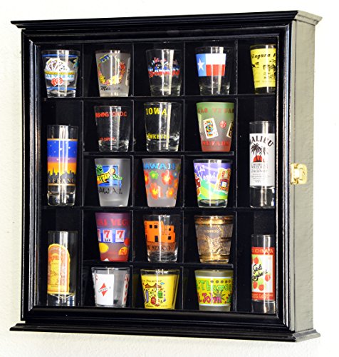 21 Shot Glass Shotglass Shooter Display Case Holder Cabinet Wall Rack 98% UV Lockable