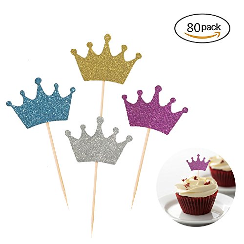 GREAT DECOR FOR CUPCAKE - These glitter crown cupcake toppers are perfect choice for cake decorations of wedding, birthday, baby shower, graduation, etc. They can be as party food picks, christmas cupcake picks, cocktail picks and more.