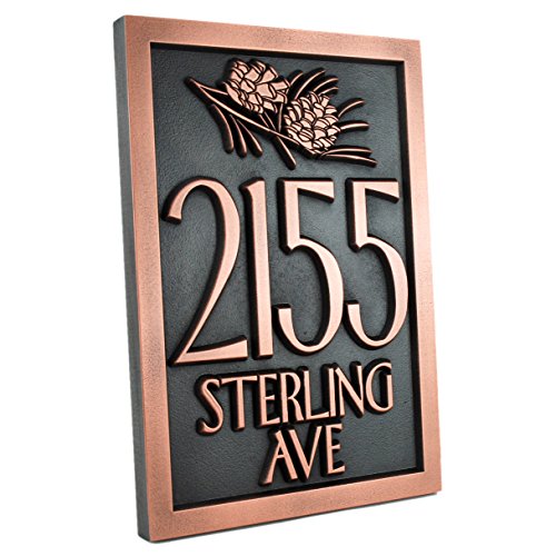 -. Title : Conifer Cone Address Plaque - 10.5x15 - Raised Copper Metal Coated Sign