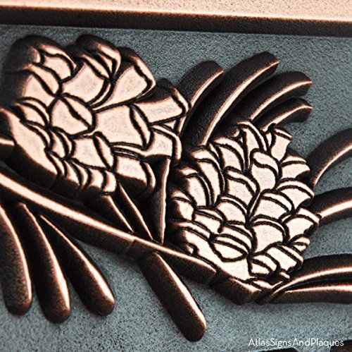-. Feature : Handcrafted and made in the USA with products from the USA. Custom made for you. / Comes with keyhole style mounting and screws. Template is also included for easy installation by you / Made of 30 pound HDU (type of plastic) that won't warp, rot or promote insects and is fine outside. / Coated with a metal coating that won't flake or peel. Looks like cast but at fraction of the P.R.Ice. / Size is 10.5 x 15 x 1 inches. Lettering will be raised and plaque will be metal coated in our Copper finish. Any questions please EMAIL us. Thank you for your business!