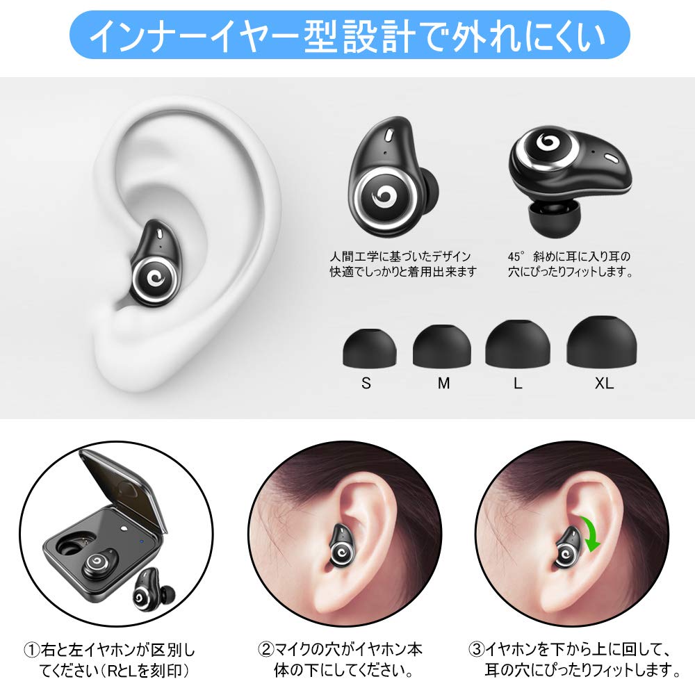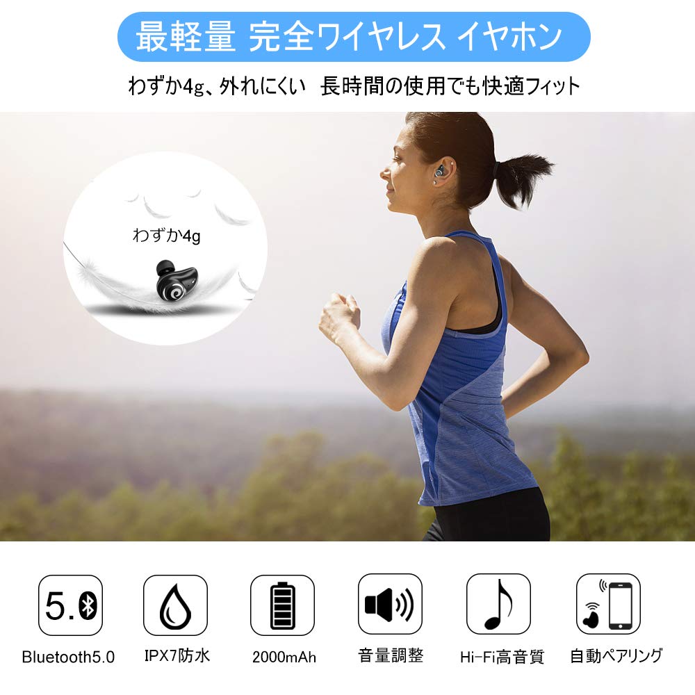 ●【フィット感抜群&操作簡単】:人間工学に基づいたデザインで、イヤホンは進化した3点で支える式で、運動中でも落下しません。片耳重量はわずか4gで、長時間の使用でも快適で安定感のある装着ができます。シンプルで操作簡単なワンタッチヘッドセットデザイン、多機能をワンタッチに集中し作ています。そのワンタッチで音楽再生/一時停止、音量調節、通話開始/終了/拒否/次の曲/Siri起動/リダイヤルなどの操作をすべて実現可能です。片手でワンタッチを便利で操作できます。