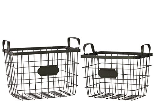 Urban Trends Metal Wire Basket with Mesh Sides, Handles and Card Holders, Black, Set of 2