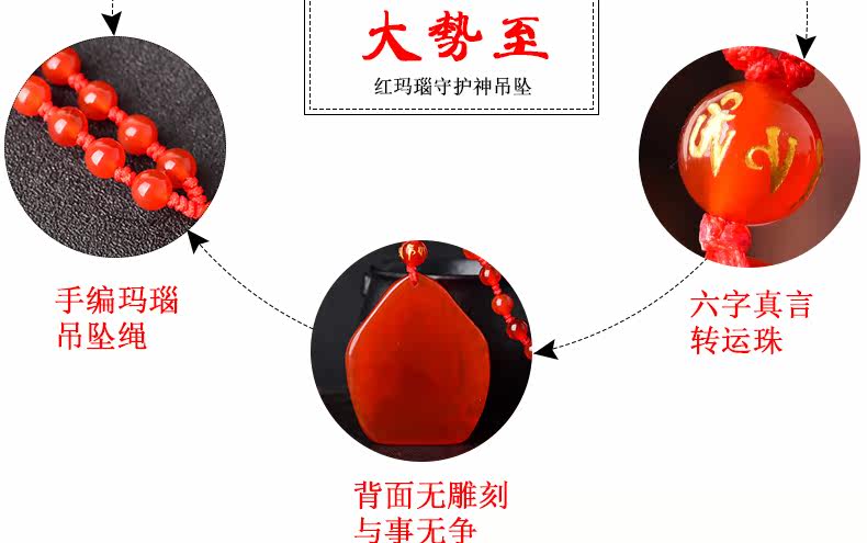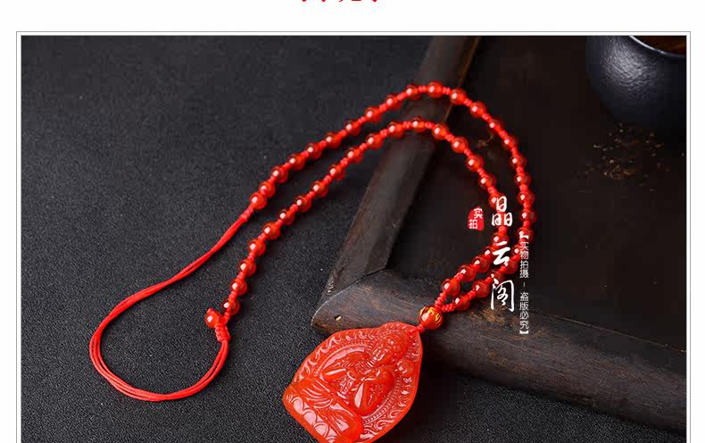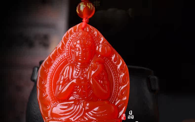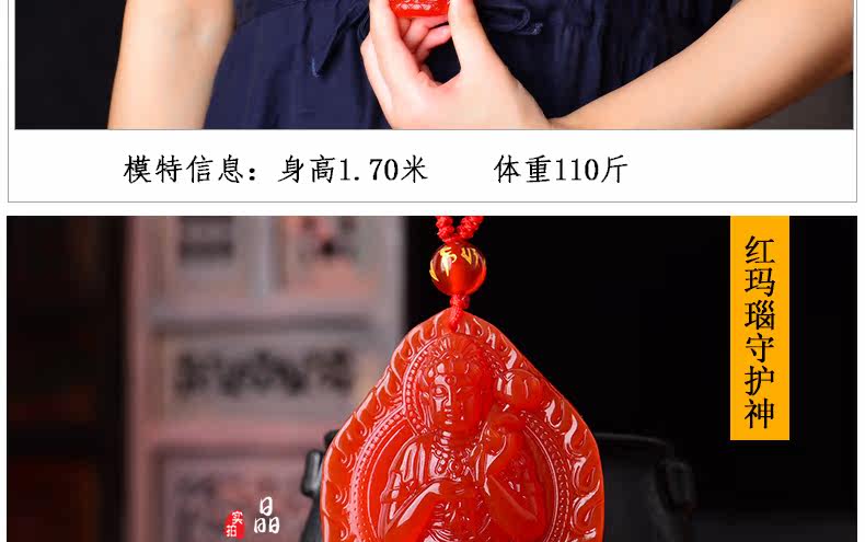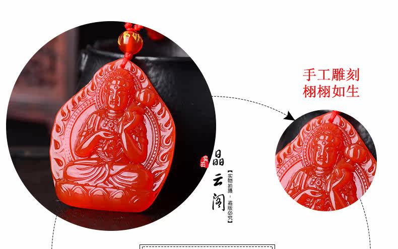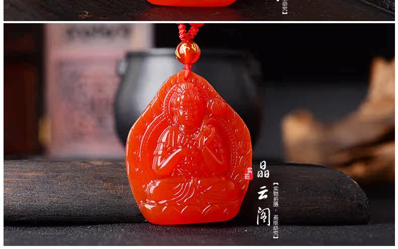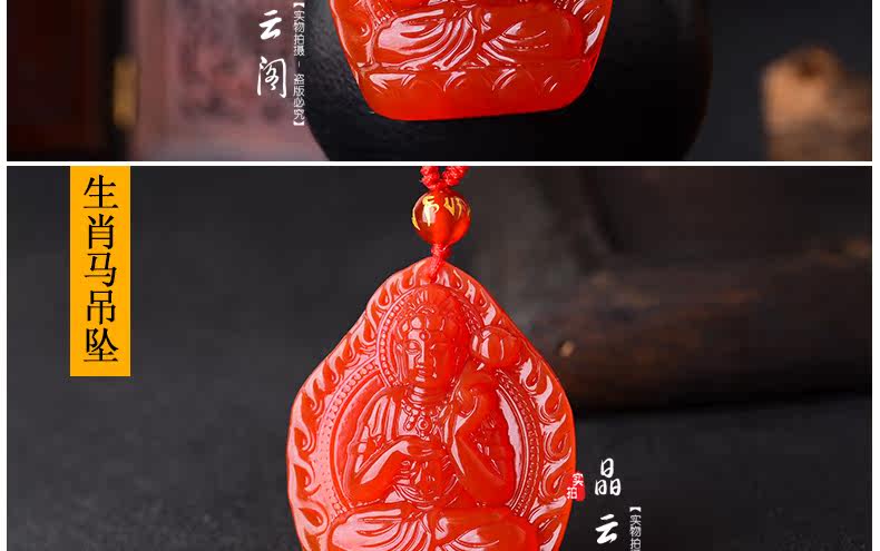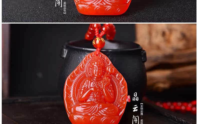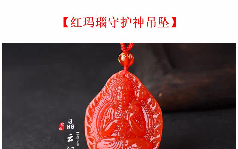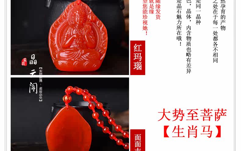 开光天然红玛瑙大势至吊坠 生肖属马本命佛男女士水晶饰品项链