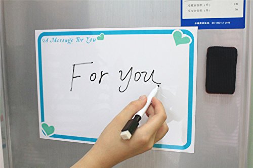 -. Feature : LOW ODOUR Magnetic MARKER-The marker comes with a small eraser and a small magnet on the cap that you can erase the wrong writing directly and attract on the refrigerator or message board, then you will not lose it. / DURABLE MAGNETIIC ERASER-The front is made of corduroy, which work well and no harm to the board, the backing rubber magnet for attraction on the fridge and whiteboard. In addition, suitable size is good for cleaning and bring you beautiful view feeling. / WIDELY USED- 0.3mm thick. You can make it as message board, graffiti board, Meno pad, to-do list, reminder of shopping list and other writing or drawing board. Just leave warm messages to families, or make a kindly reminder to colleagues at the office. / PERFECT GIFT-As it really useful and convenient that can be use many place, so it will be wonderful gift for parents, children, teachers, Kids and can be sent in memorable day, such birthday, anniversary, Christmas etc. / HIGH QUALITY MATERIAL-The magnetic message board is made of polymer materials, rubber, magnetic ferrite powder, PET film, which is flexible, durable and portable. The writing board is self magnetic and can be attract to the fridge and other ferrous metal surfacre. It processed with special surface treatment technic so that it is dry erased and can be wipe up cleanly after 30 days. And the rubber material is high quality and compliance with environmental standards, and safe for daily life.