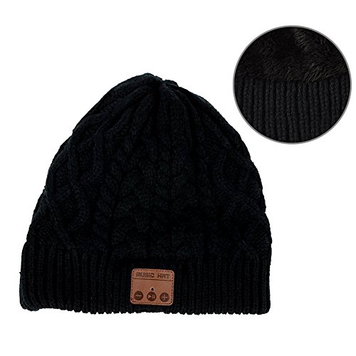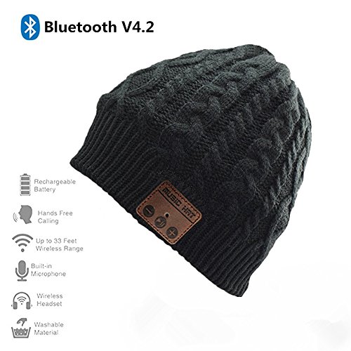 Happy-top Wireless Bluetooth Beanie Hat 4.2 Unisex Winter Warm Knitted Hat Trendy Cap with Stereo Headphone Headset Speaker Mic Hands-free for Sports Workout Best Christmas Gifts (Black)