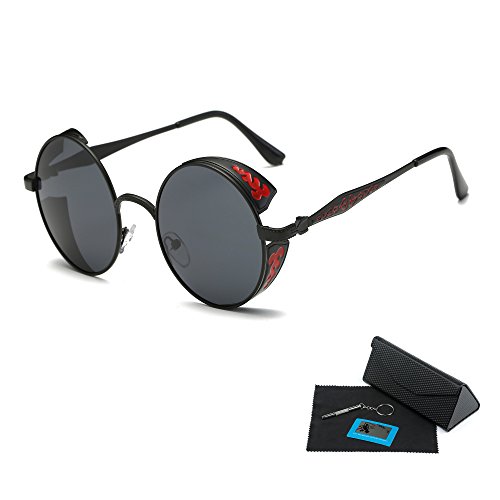 -. Title : Shushu Jacob 偏光 サングラス ラウンド メンズ ミラー ファッションメガネ スチーム パンク 丸いレンズ UV 紫外線カット ケース付