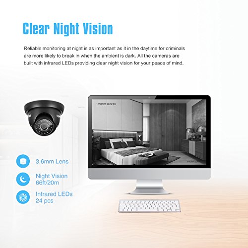 * 8-CH 1080N DVR with 720P HD indoor and outdoor cameras for around-the-clock safeguard,Mobile viewing remotely via free and easy to use App, smart motion-trigged email alert