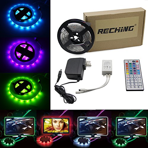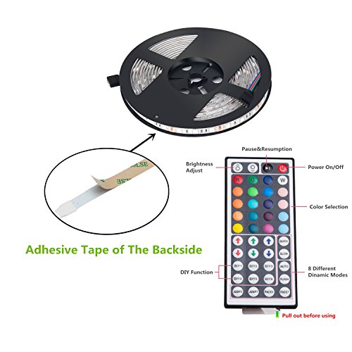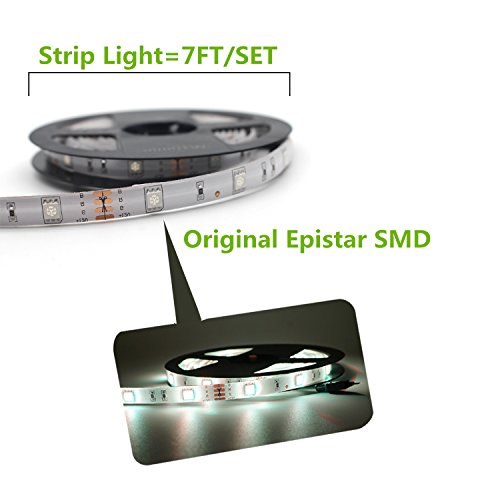 Led Strip Lights TV/PC Background light Night Light Kit Reching waterproof SMD 5050 RGB 7 Ft (2.4M) 72leds(30leds/m) with 44key Remote Controller and Power Supply For Holiday Party Decorators(7FT RGB)