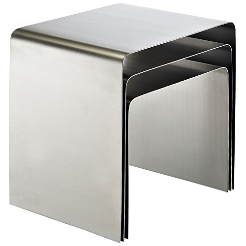 -. Feature : Modern lightweight end tables Innovative office accent piece Brushed stainless steel Three nesting coffee tables Easily stores away / brushed Stainless steel / Overall Product Dimensions: 13"L x 15.5"W x 15.5"H Large Table Dimensions: 13"L x 15.5"W x 15.5"H Medium Table Dimensions: 13"L x 15"W x 13.5"H Small Table Dimensions: 13"L x 13.5"W x 11.5"H