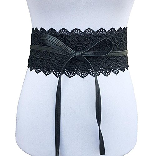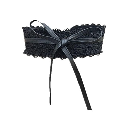 -. Title : SUNNYME Women's Lace Waist Belt PU Leather Bowknot Wrap Around Obi Cinch Boho Belt