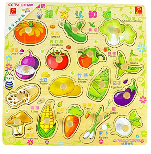 -. Title : The Latest Children's Early Education Toys Cute And Colorful Wooden Cognitive Puzzle-8128-3(Vegetables Cognitive Hand Grasp Plate)