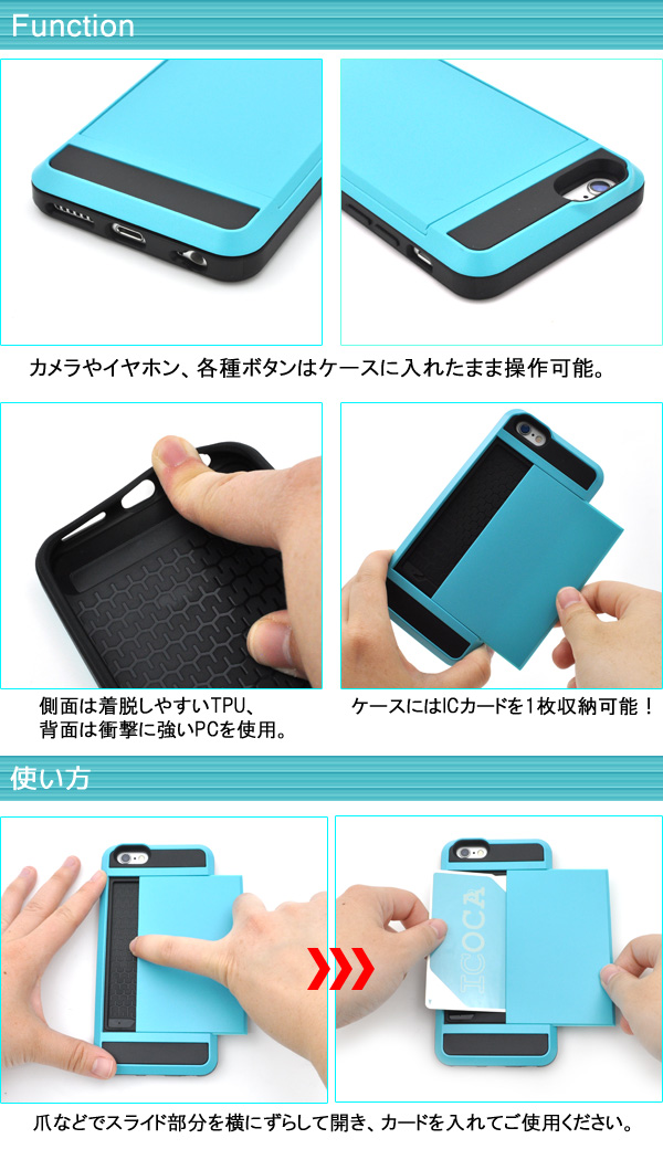 ICカード収納可能!iPhone6/6s用スライド式カードホルダー付きケース