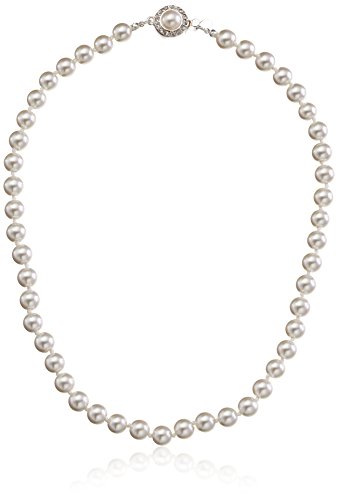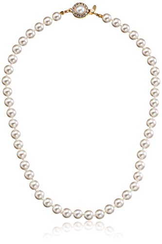 Premium Simulated Cream Pearl Hand Knotted Goldtone Necklace with Cabochon Clasp, 18"