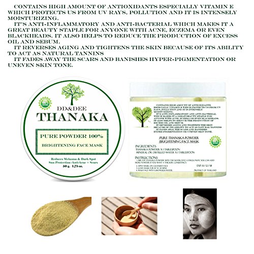 -. Title : DD&DEE Naturals Pure 100% Thanaka Powder For Face Brightening Face Mask, Reduces Melasma & Dark Spot Treatment Help Anti-Acne, Aging, Acne Scars Removal Grade "Groz" Quality 50 G.