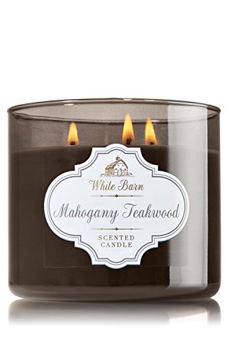 1 X Bath & Body Works White Barn Mahogany Teakwood Scented 3 Wick Candle 14.5 oz./411 g