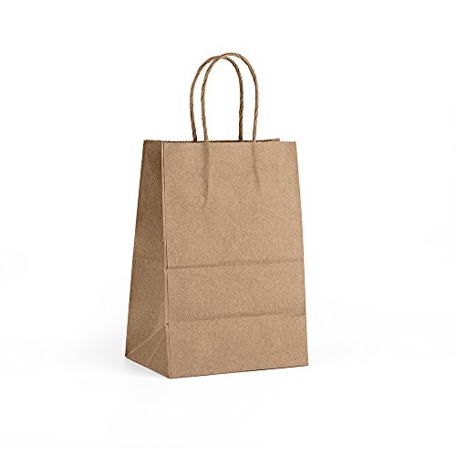 Halulu Brown Kraft Paper Bags - Gift Party Bags with handles - 25pc 5"x3.75"x8" Shopping Bags