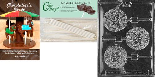 Cybrtrayd '25th Lolly' Letters and Numbers Chocolate Candy Mold with 50 4.5-Inch Lollipop Sticks and Chocolatier's Guide