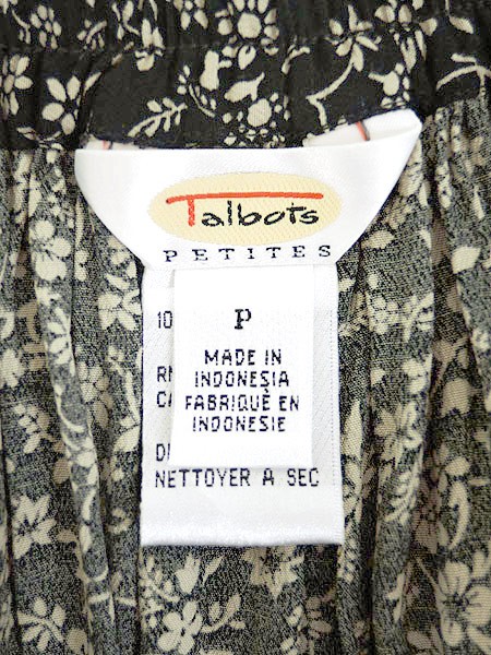 Ladies ブランドTalbots タルボット カラー黒ベース メール便不可 コンディション★★★ 素材レーヨン 表記サイズP スタッフコメント裏地無し。 実寸サイズ 着丈 79 cm ウエスト 66cm 〜 88cm (26インチ〜35インチ) ※ウエスト・ヒップ以外は平置き採寸