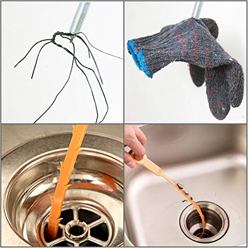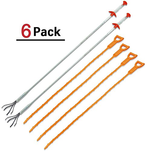 -. Feature : 6 Pack Hair Clog Remover Drain Auger Cleaning Tool ?2 stainless steel and 4 plastic clog removers? / Simply insert clog remover thru most strainers as it grabs obstructions at P-trap were most clogs occur or hook the hair / Quick and Painless Slow-Drain Relief for Clog Remover Cleaning. Offers two cleaning tools, a tool that can capture a solid obstruction, another tool hook the hair and debris / Multi-tooth clog remover efficiently catches hair, food and other blockages. Flexible clog remover fits small strainers and pipes, flexes at P-trap where most clogs occur / Ideal for kitchen, bathroom & utility sinks, bathtubs and showers clog remover