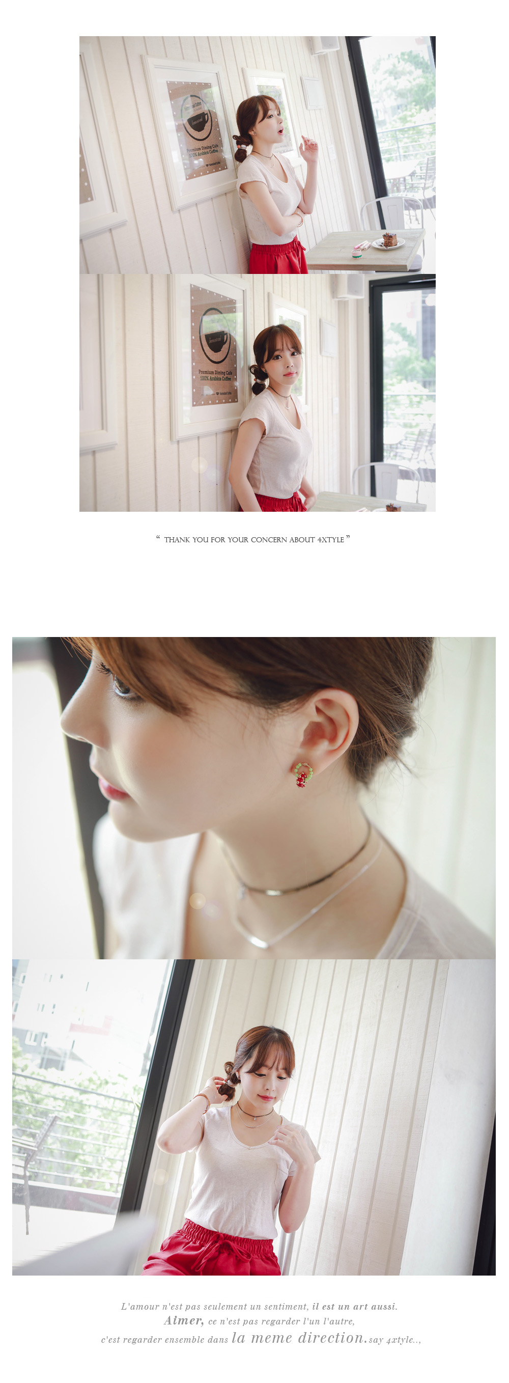 ⊙링 부분과 팬던트 부분의 대비되는 두가지 색상이 조화롭게 잘 어울려 어떤 룩에도 포인트가 되어 잘 어울린답니다 :) 청바지와 흰 티셔츠 같이 심플한 룩에도 무난히 잘 어울린다는 사실! 범블 귀걸이로 쉽게 코디를 완성해 보세요~