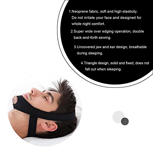 -. Feature : Good Material: this chin strap is made of high quality lycra, good elasticity, greatly enjoy the comfort of soft fabric. After receiving the package, please hang this strap in airy place to de-odor because of the material. / Comfortable During Sleeping: keep your chin and ears out of chin strap, greatly to avoid the restriction of strap, breathing and no side effects. One size fits all, adjust straps in chin and neck back. / Simple & Easy to Use: simply sling it over your face around your chin and neck. The Molain snoring stopper stops snoring by holding your jaw firmly in place. Greatly prevent tongue and throat from falling back and blocking airway. / For Better Sleeping: effectively stop snoring caused by sleeping with open mouth and improve sleeping quality of yourself, your wife or husband. / Quality Warranty: 24 hours email customer service support. Any query after sales, just mail to us, We Molain would treat your issue seriously and try what we can to solve your problem.